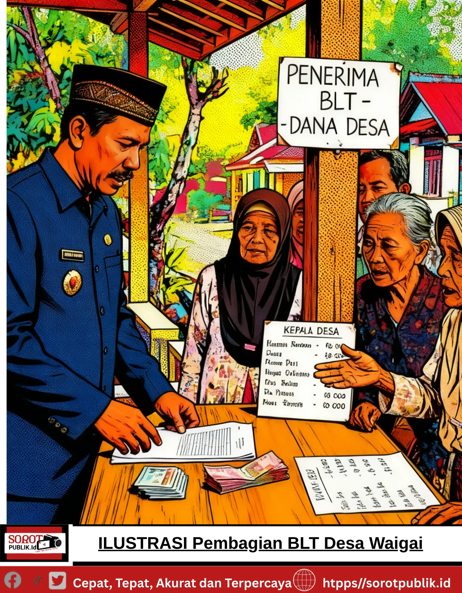 Dalam postingannya, Junaidi menegaskan bahwa dari jumlah penerima BLT sebanyak 42 orang, masing-masing hanya menerima Rp: 600.000. Padahal sebelumnya BLT diberikan Rp: 900.000 per orang.